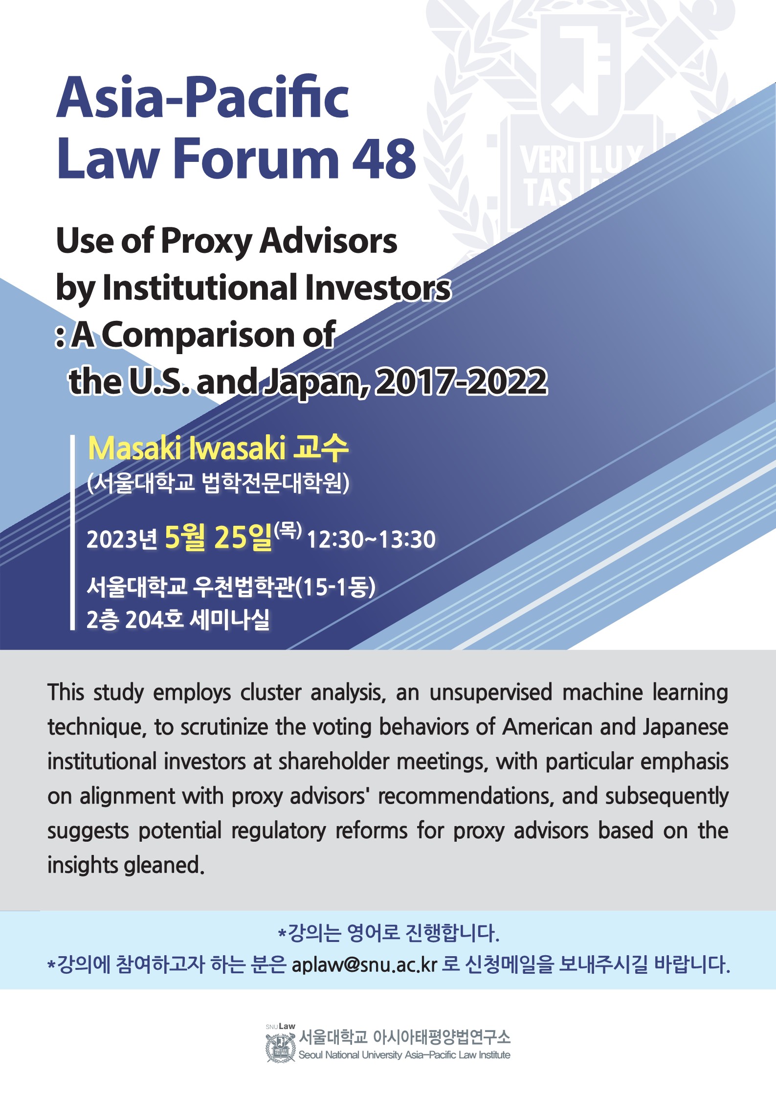 1 Gwanak-ro, Gwanak-gu, Seoul 08826, Korea / Tel : 02-880-4119 / E-mail : aplaw@snu.ac.kr